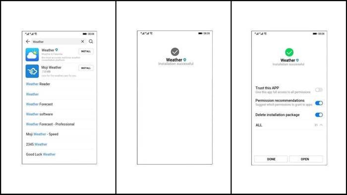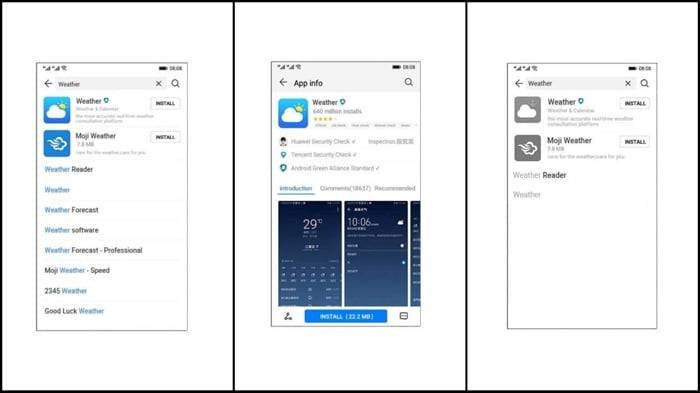 تبين إحدى الصور كيف ستبدو التطبيقات في متجر تطبيقات هواوي, بينما الأخري تعطي نظرة حول الشكل العام للنظام بشكل جزئي, بحيث تبين لك بعض المظاهر فقط مثل نوع الخط المستخدم من شركة Huawei أو إعدادات أذونات التطبيق, ونتوقع أن الشركة سوف تجعلها تبدو أكثر أناقة واحترافية من خلال الحصول على واجهة المستخدم EMUI التي تعد أحد أفضل أشكال هواتف الأندرويد.